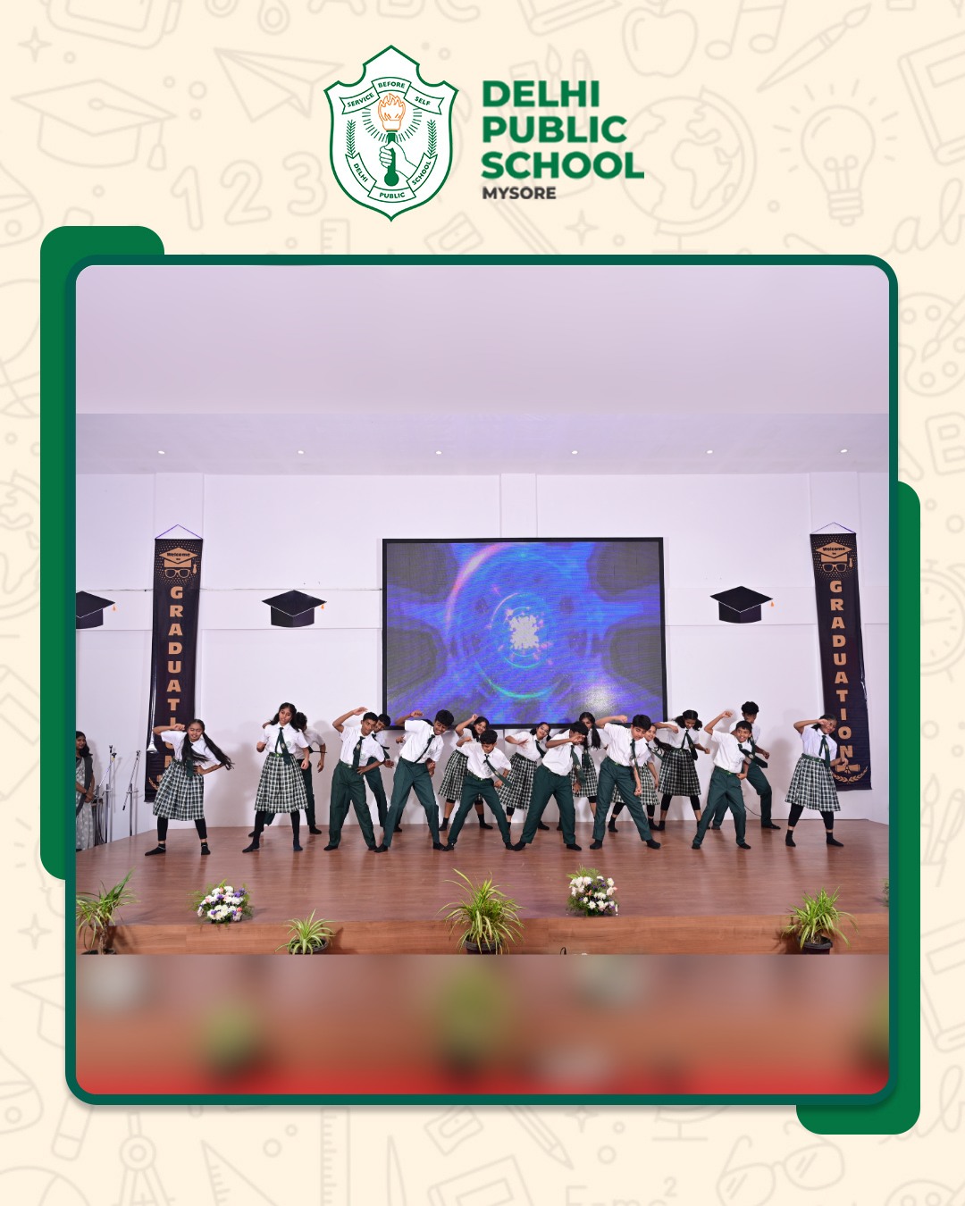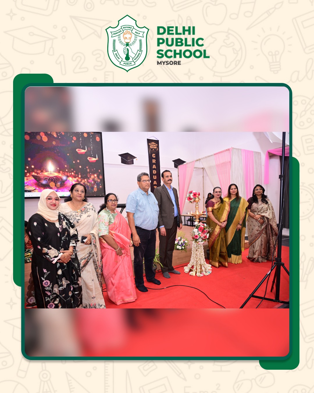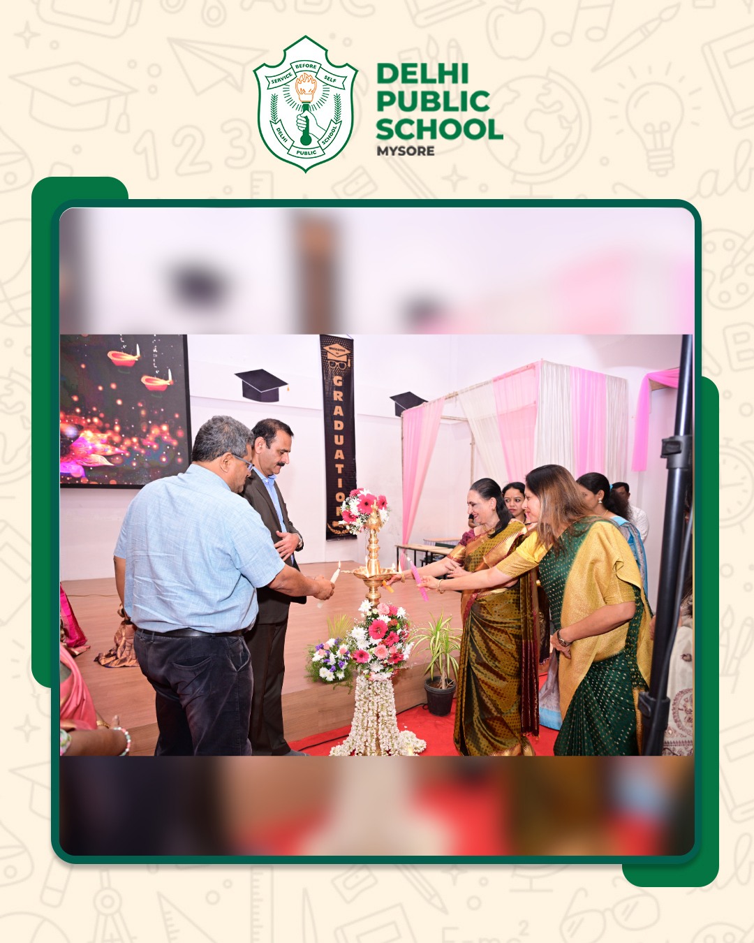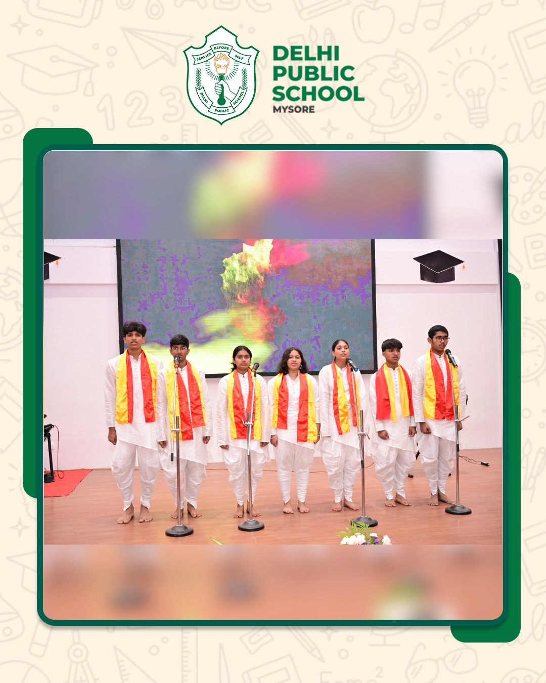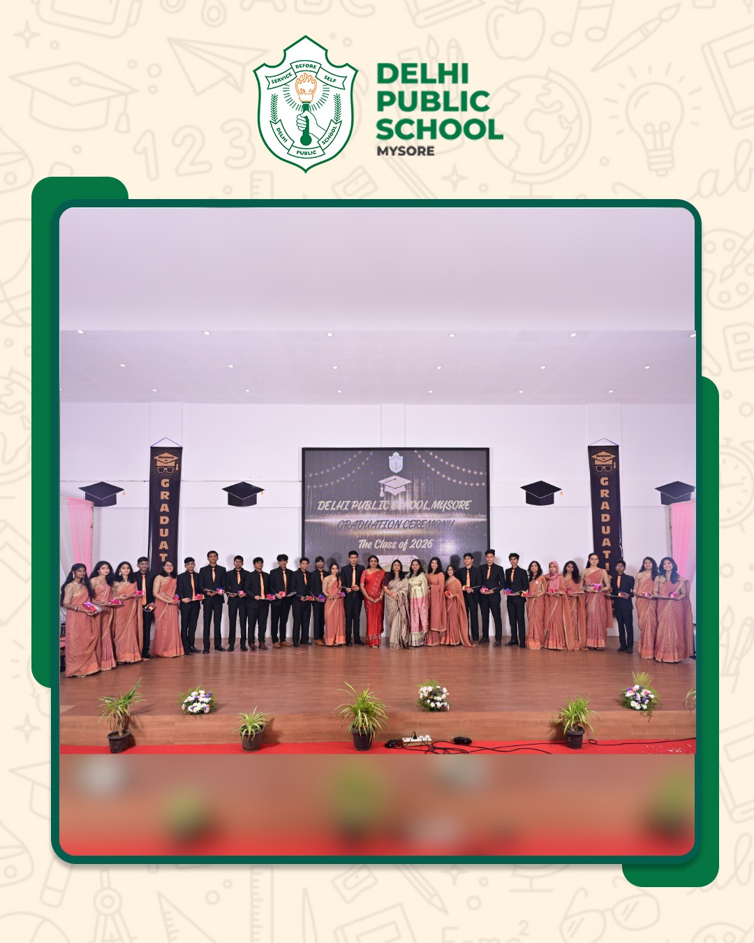 The Graduation Ceremony of the Class of 2025–26 at Delhi Public School, Mysore was a memorable celebration of achievement, growth, and new beginnings. The ceremony commenced with the graceful entry of the graduating students, accompanied by the Senior Mistress, Segment Coordinator, subject teachers and young escorts, setting a tone of pride and joy.The event was inaugurated with the traditional lamp lighting and a soulful invocation song, symbolizing the pursuit of knowledge and wisdom. The gathering was warmly welcomed by the Director Principal, Mrs. Manju Sharma, followed by sacred readings rendered by the students of Grade 11.