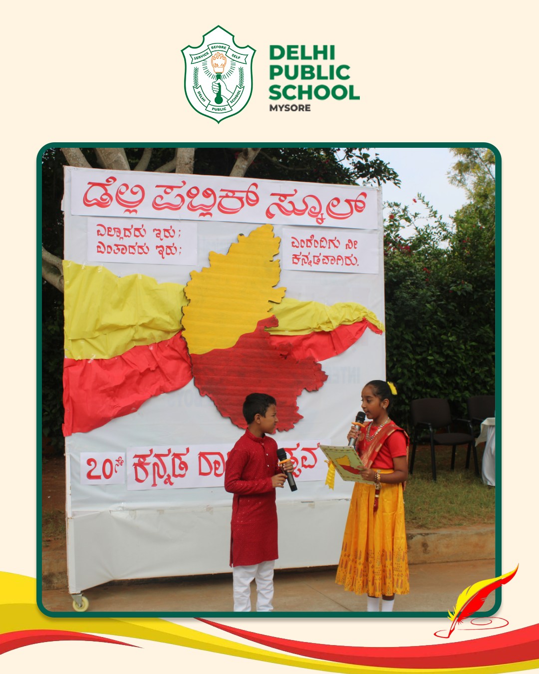 Delhi Public School, Mysore marked Kannada Rajyothsava with a vibrant and dignified celebration, honouring the rich heritage, language and culture of Karnataka. The special assembly featured eloquent speeches, a powerful mono-acting performance and a graceful dance presentation, each capturing the pride and spirit of the state. Students beautifully highlighted the significance of Rajyothsava , reflecting on Karnataka’s history, unity and cultural splendour. The programme stood as a heartfelt tribute to the land that inspires us, showcasing the linguistic pride, artistic brilliance and deep-rooted values