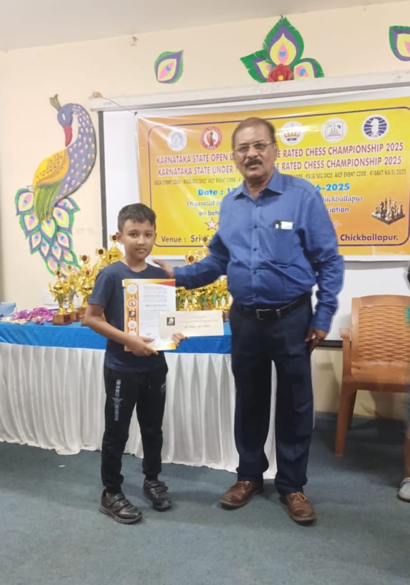 Lakshit of Grade 4 has displayed outstanding skill and consistency in chess by securing notable positions in multiple tournaments. At the Karnataka State Open FIDE Rated Championship 2025, he achieved an impressive 2nd place in the Under-9 category. In addition, he showcased his talent in a One-Day Chess Tournament, where he competed in the Under-10 category and secured the 3rd Prize. Lakshit’s focus, strategic thinking and dedication to the game are truly commendable