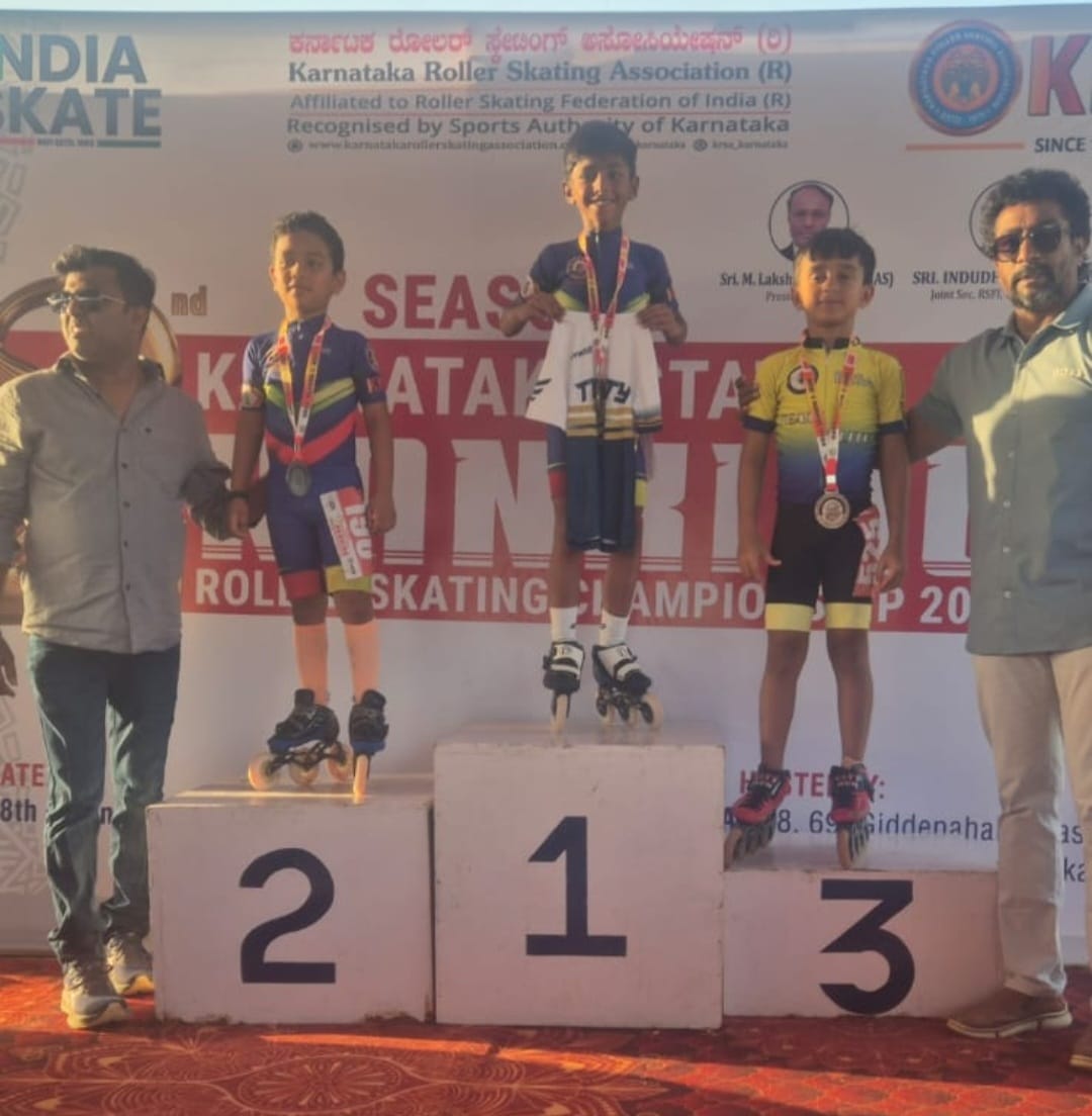 Mihal of Class 2, has excelled at the State Level Skating Competition organized by the Karnataka Roller Skating Association. He displayed exceptional talent and determination, winning the Gold Medal in the 1-lap race and the Bronze Medal in the 2-lap race. His remarkable performance at such a young age is truly commendable and serves as an inspiration to his peers.