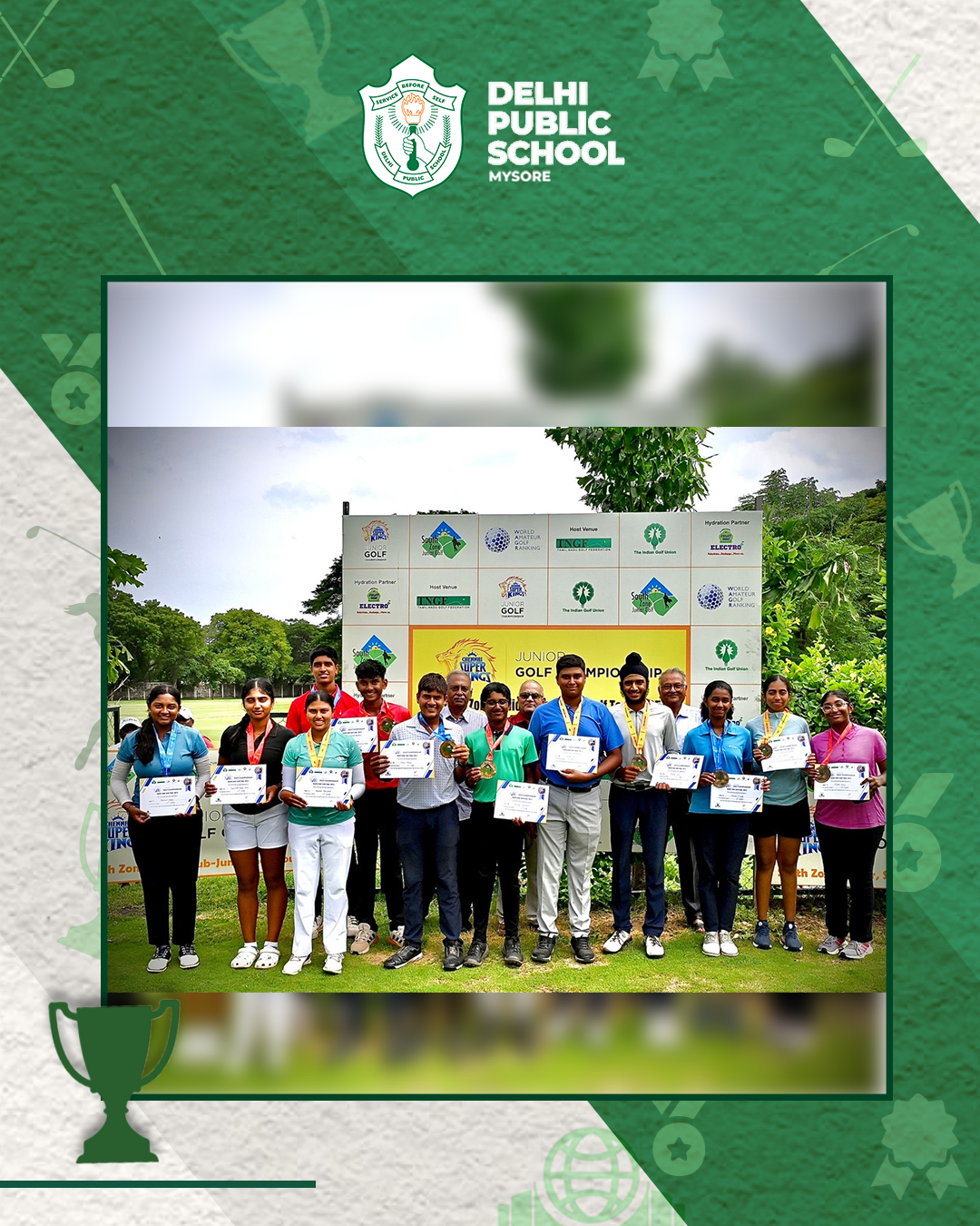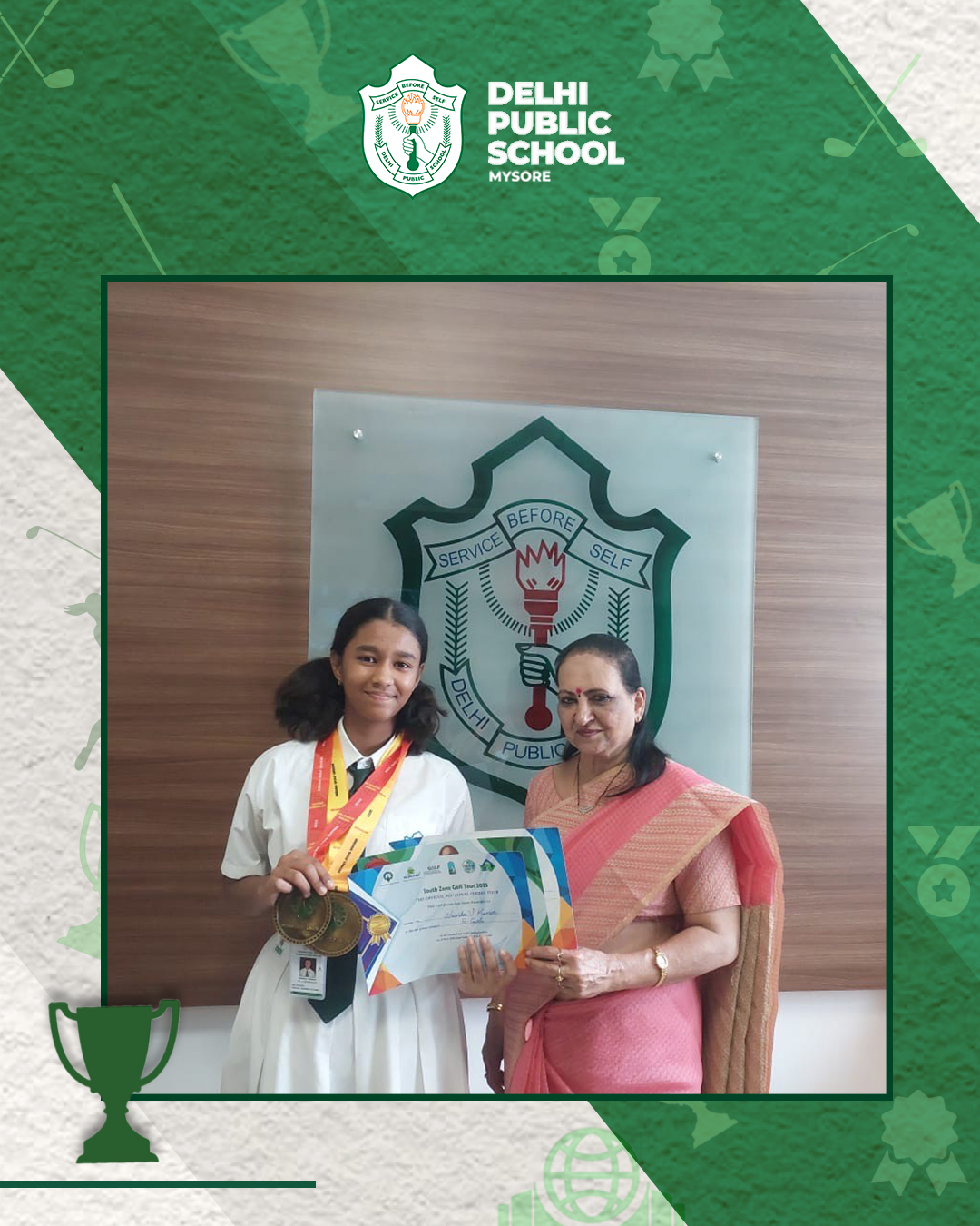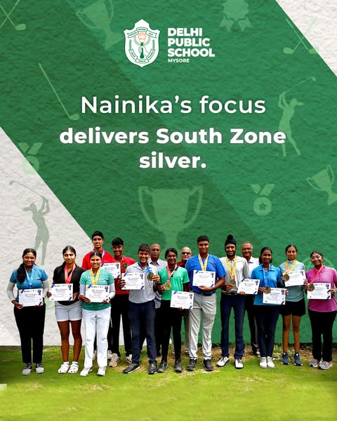 Nainika V. Kumar, a Grade 7 student of Delhi Public School – Mysore, shined brightly at the 36th NR Golf Championship 2024, organized by Cycle Brand Agarbathi at JWGC Golf Club, Mysore, on Saturday, 14th December 2024. With her outstanding performance, she proudly clinched the title of “Best Lady Golfer 2024”, showcasing her talent and dedication to the sport.